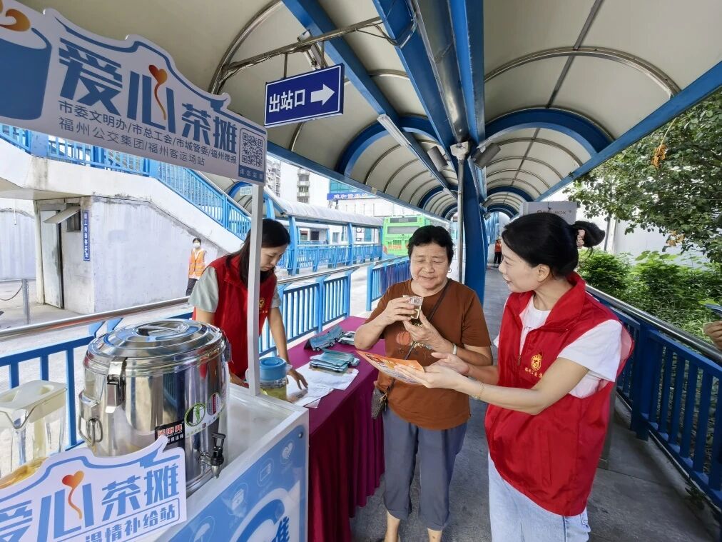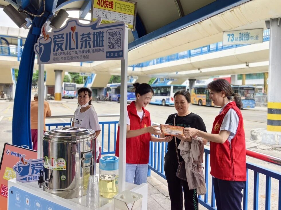 在火车站北广场站、火车南站东广场站、公交仁德站、鼓山公交总站,福州公交集团以移动式“爱心茶摊”为宣传平台,向市民讲解绿色出行在缓解交通压力、保护环境、节约能源等方面的重要意义,倡导大家优先选择公交、地铁、共享单车等低碳出行方式,并提醒大家遵守交通法规、文明安全出行。志愿者还认真收集并记录了市民对公交线路开通、站点设置、车厢标识牌内容等方面提出的建议。此外,各站点像往常一样为市民提供文明劝导、线路咨询、出行指引、大件行李搬运、热茶饮等暖心服务。