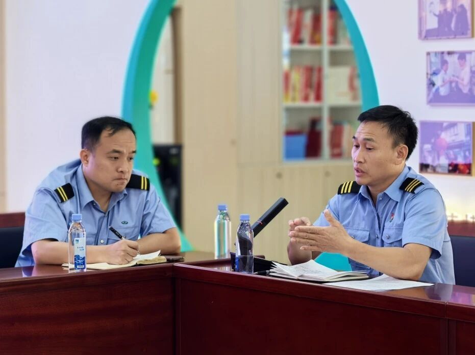 第二车队办公室主任施吉黎讲解车队如何建立“师徒制”,对新入职驾驶员进行技术指导,并在春运、防抗台风等“急难险重”任务中加以历练,帮助新驾驶员快速成长,养成良好的驾驶习惯。